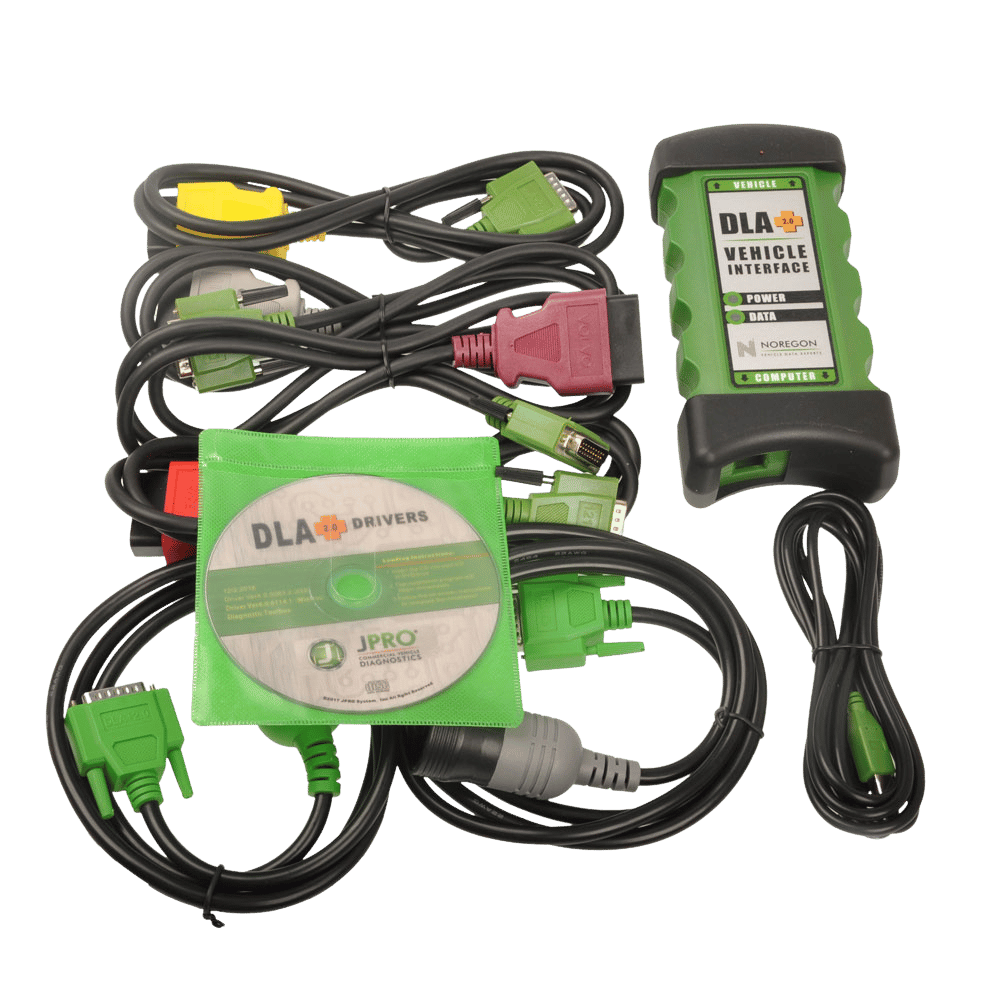 The 2025 V1 Noregon JPRO Heavy Duty Medium-Duty Truck Scanner Diagnostic Tool with JPRO DLA+ 2.0 Adapter Kit is a comprehensive diagnostic solution for all makes and models of commercial vehicles (Class 3-8), covering brands like Mack, Volvo, Cummins, Detroit Diesel, International, PACCAR, Ford, GM, Isuzu, and Sprinter. It features the latest 2025 V1 software, offering bi-directional controls such as DPF regenerations, parameter adjustments, and cylinder cut-out tests, with support for protocols like SAE J1587/J1708, J1939, and ISO 15765, and includes detailed OEM-level fault code descriptions. The kit includes the JPRO DLA+ 2.0 adapter, heavy-duty (6-pin & 9-pin) and medium-duty Type-B OBDII cables, a USB cable, and a carrying case; optional bundles may include a pre-installed laptop like the Lenovo T450 or Panasonic FZ-G1 (Intel i5, 8GB RAM, 256GB SSD).
